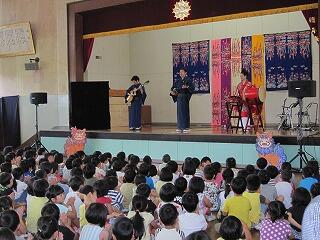 6月15日(金)に、美ら(ちゅら)劇団の方をお招きして鑑賞教室が開かれました。沖縄の民舞を鑑賞しました。全校児童でエイサーにも挑戦しました!
