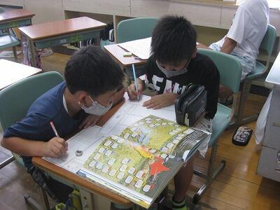 社会科の学習で学校の周り探検に行きました。白地図に土地の使われ方や主な建物を書きました。たくさん発見できて子ども達も新富の良さを知ったようです。