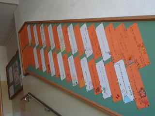 廊下や掲示板に掲げてありますよ。参観日にじっくりご覧ください。
