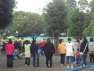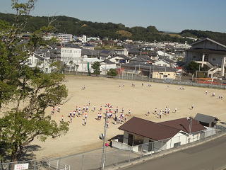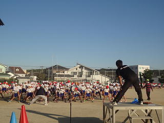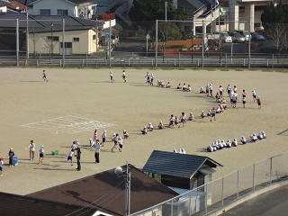 朝の練習が始まりました。全校で走っています。