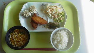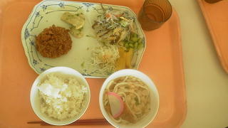みんなで配膳した昼食・・・、おいしそうですね。
