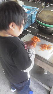 5年生・・カレーの具を刻みます。