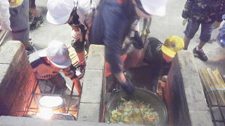 カレーを煮込み、飯盒を火にかけ、ごはんを炊きます。どうなることでしょうね・・・。