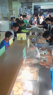 和気あいあいの給食の風景・・・・。まだ、食べたい・・!みんなで分けあっていただいていました。