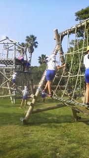 朝食の後、フィールドアスレチックに挑戦!