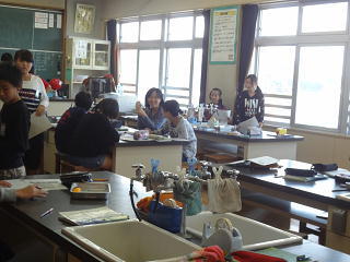 「ごはんとみそ汁」の調理実習が行われていました。みんな楽しそうです。