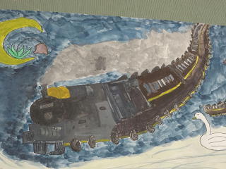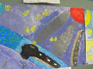 銀河」鉄道の感想画を描きました。それぞれの銀河鉄道が描かれていますね。
