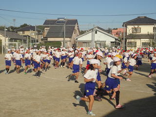 全校児童みんなで走ります!すがすがしい気分で一日が始まりますね。