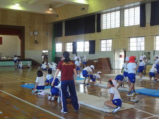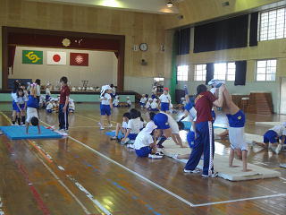 指導員の方々の支えの中、マット運動に磨きをかけていましたよ。
