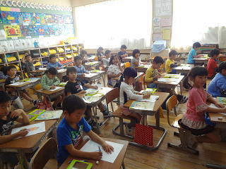 1年生は身を乗り出してお話にききいっていました。