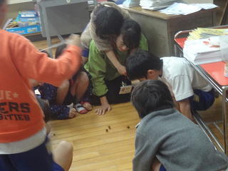 ひろってきたどんぐりでコマを作ったり・・・回したり・・・。楽しそうでした。