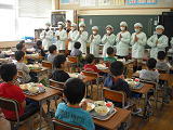 登校班で登校して、4時間授業の後、楽しい給食。配膳をしてくれた6年生にお礼を伝えて「いただきます。」帰りの会の後は、登校班の班長さんと帰ります。