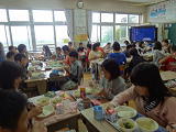 学校には、子供の元気な声と、とびきりの笑顔がもどってきました。給食のマーボー豆腐をパクパク・・・。それぞれの休日を楽しんだらしく、友達との会話が弾んでいました。