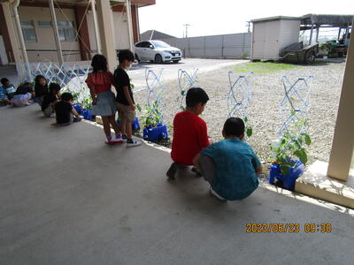 また、今までお世話してきた あさがおも ようやく花が咲き始め、大喜びの1年生です!
