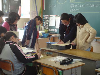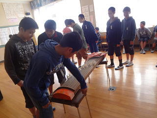 日本の音楽・・・今日は宮城道雄「春の海」についての学習。実際の筝に興味しんしん。弾いてみて繊細な音にびっくり・・・の様子でした。