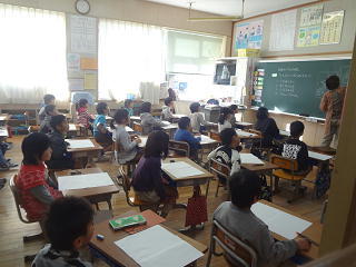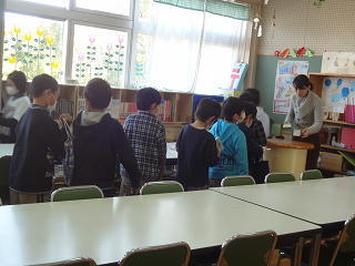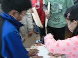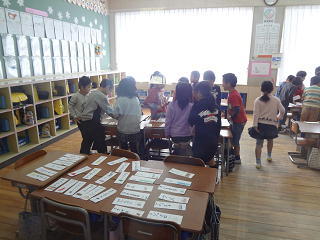 「いらっしゃい。いらっしゃい。」元気なかけ声の中、1年生のおみせやさんが開店しました。国語の勉強です。手作りの売り物カードを一生けん命作りました。