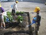 学校の砂場に、砂がたくさん入りました。砂遊びの大好きな1年生は、夢中で遊びました。