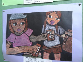 宿泊学習での火起こし体験の思い出等、それぞれの思い出が版画のテーマになっています。