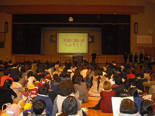 本校の近くにある新富幼稚園・八幡保育園にて、