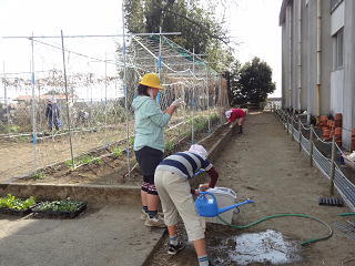 ぼくたちは、冬野菜を育てています。育てたい野菜の苗を買いに行って、毎日水やりをがんばっています。キャベツ、チンゲンサイ、ブロッコリー。