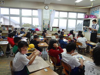 今日の給食は、新富町産の米っ粉を使ったシフォンケーキが登場!子供たちは、目を輝かせていました。そして美味しくいただきました。