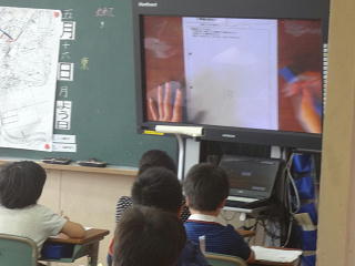遠足でまわった新富町・・・場所の確認や商店街、病院等・・地図を使いながらまとめの学習を行っていました。