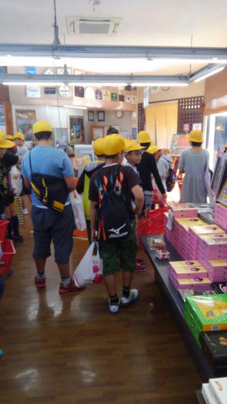 修学旅行最後のお楽しみは、お土産買いです。知覧パラダイスのお土産コーナーで品定めをする子ども達。お土産と土産話をたくさん持って帰ってくれることでしょう。