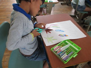 ハサミを上手に使って作品作り!ずいぶん上手になりました。