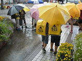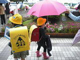 1年生も大きな傘で下校・・・。いつも以上に車、水たまりや水路などに注意して、気をつけて帰ってください。
