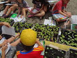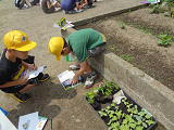 4年生は、みんなで「へちま」「ひょうたん」などの観察。じっくり観察して、それぞれ、理科のノートに成長の記録を記していました。