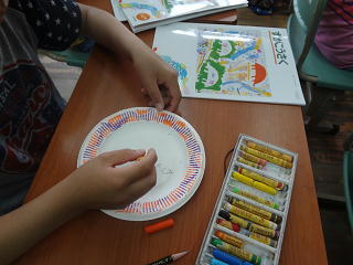 クレヨンで模様をつけて、何やら作品作りに取り組んでいました。何ができるのでしょうね。完成が楽しみです。