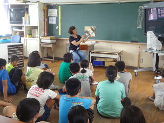 みんなすっかり本の世界に・・・。いつもは1年生に読み聞かせをしている6年生・・・・。ブーフーウ―の方の語り口にも注目していました。
