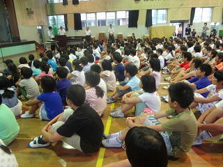 生徒指導の係の先生から、生活に関する大事なお話がありました。子供たちは自分をふり返りながら熱心に耳を傾むけていましたよ。