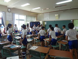 みんなで黙想!そして、いっせいに始業のあいさつ!授業の始まりに心をそろえています。
