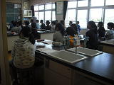 3時間目が始まる1分前には全員が着席完了。机の上を見ると、鉛筆やドリルなど、次の学習の準備が完了。感心して見てるとチャイム・・・・。同時に黙想・・・そして、号令がかかり、すぐに授業が始まりました。それを見届け、理科室の横を通ったら、すでに2組の授業が開始されていました。