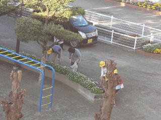 月曜の朝、新しい班長のもと、みんな元気に登校!そして、6年生はすぐにボランティア活動・・・、花芽を摘んだり・・庭を掃いたり・・・。1週間の幕開けです。