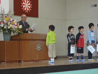 1年生から5年生が集まっての修了式!校長先生より各学年の代表に修了証が手渡されました。