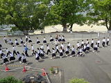 本校1階は海抜13.3メートルあり、3階は海抜20メートル以上あります。中学校は、本校より低い場所にあるので、本校へ避難します。本日は昼休み時間での地震発生という想定だったので、運動場ではたくさんの児童が遊んでいました。そこからの移動も含めての避難訓練でした。