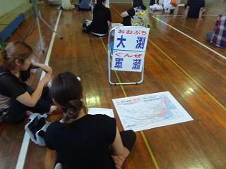 参観日。授業参観の後、保護者の方々が地区ごとに講堂に集まり、防災(特に津波発生時の避難)について、意見を交わしたり、対応の仕方について話し合ったりしました。
