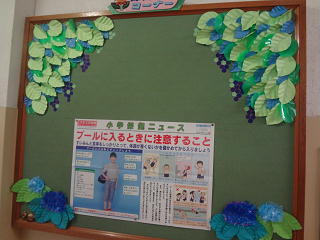「プールに入る時に注意すること」が掲げてあります。たんさんの大切なことが掲げられていますよ。