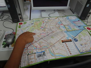 訪問先の場所を地図で調べたり、パソコンで訪問先について調べたりしています。楽しそうです。