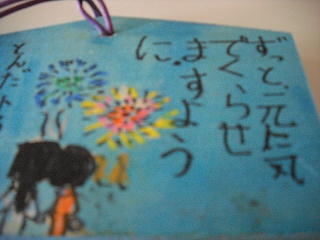 八幡神社の夏祭りに掲げられる絵馬を作成!自分の願いを記しました。