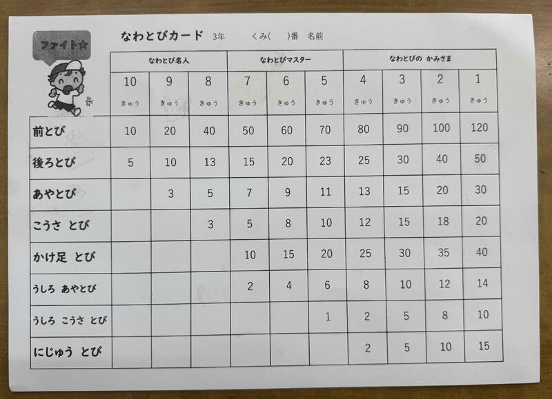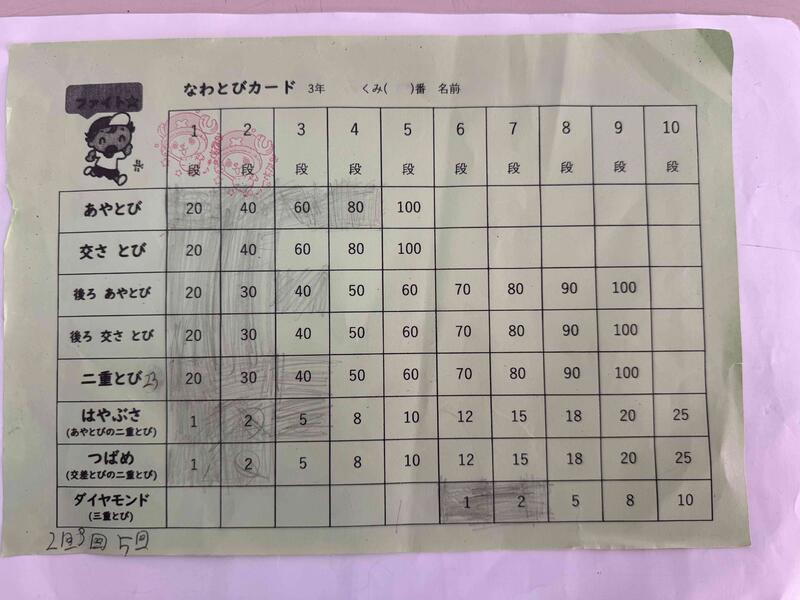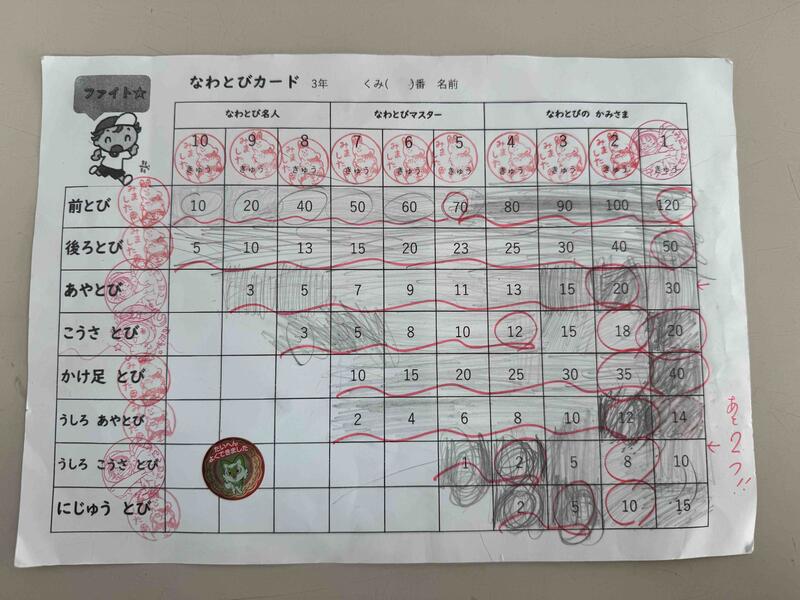 1枚目のなわとびカードで1級を取れた子どもは、2枚目のカードに挑戦しています。