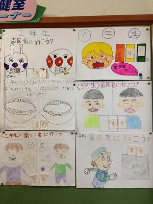 保健室前の掲示板に歯の治療の大切さについて知らせています。