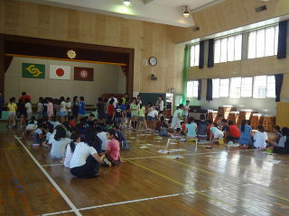 「お米との出会い」の学習・・・今日は苗を触ったり・・・、もみ殻を手に乗せてみたり、・・食べてみたり・・・。ワクワクする学習が講堂で展開されました。