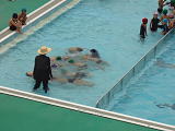 顔を水につけたり・・・、先生のところまで泳いでいったり・・・、先生のそばで浮かんでみたり・・・、水中じゃんけんしたり・・・。いろんなことに挑戦していました。