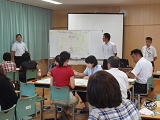 後半は、小学校と中学校の先生がテーブルを囲み、日頃の教育活動における諸問題について意見を交わしたり、対策や対応について協議したりして研修を深めました。