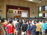 1年生にとっては、はじめての全校朝会。昨日、並び方の練習をしていたので、じょうずにならぶことができました。