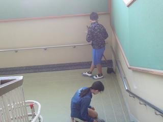 自分たちの学校をきれいにしようと進んで掃除に励んでいましたよ。1年生の教室にいってやさしくお世話している6年生もいますよ。頼りになる6年生です。