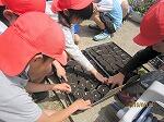 新富町発見!・・・・種から野菜を育てる活動に取り組んでいます。キャベツのアオムシを観察した後、4月22日にズッキーニ、四角まめ、千成りひょうたんの種をまきました。